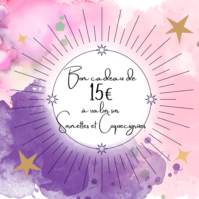 Vous recevrez votre bon cadeau de 15 euros par mail après votre commande.