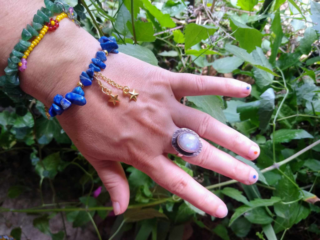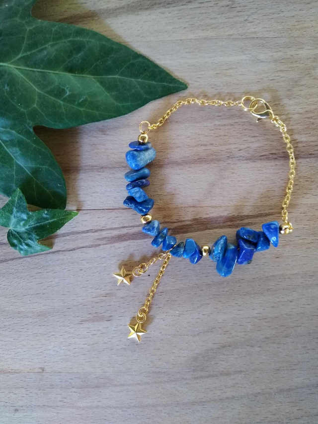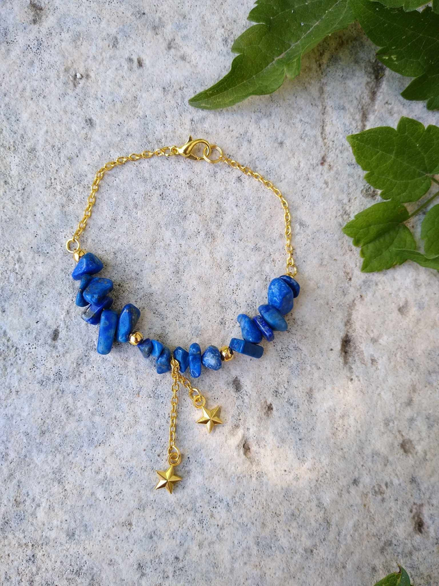Bracelet doré en lapis-lazuli et accompagné de ses deux petites étoiles filantes !