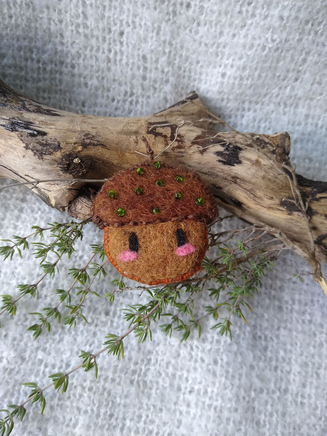 Laine feutrée, perles rocailles, broderie