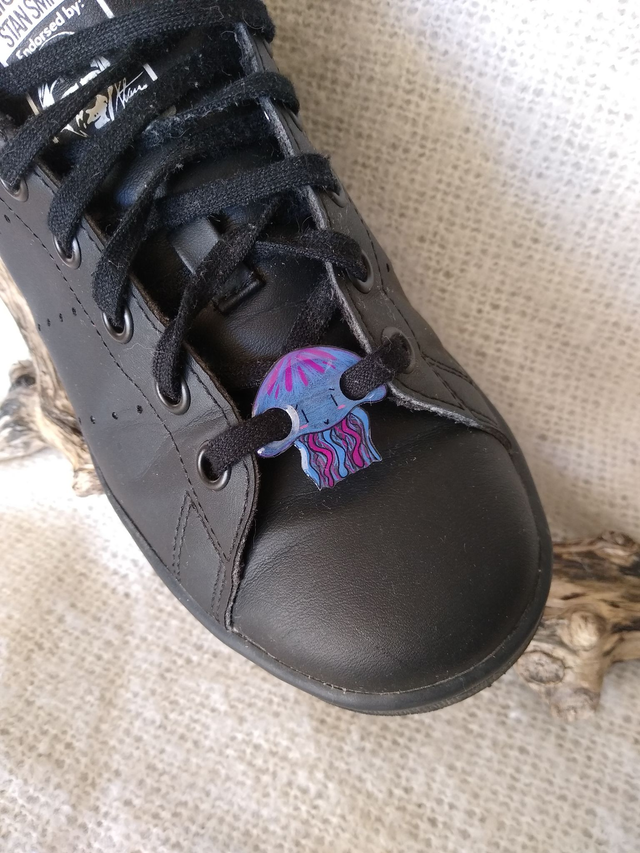 Gloups ! Voici une méduse toute mimi qui accompagnera chacun de vos pas avec joie! A glisser sur vos lacets de toute urgence !