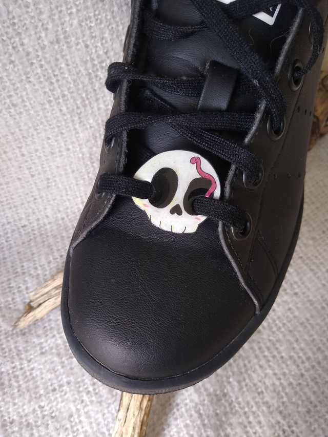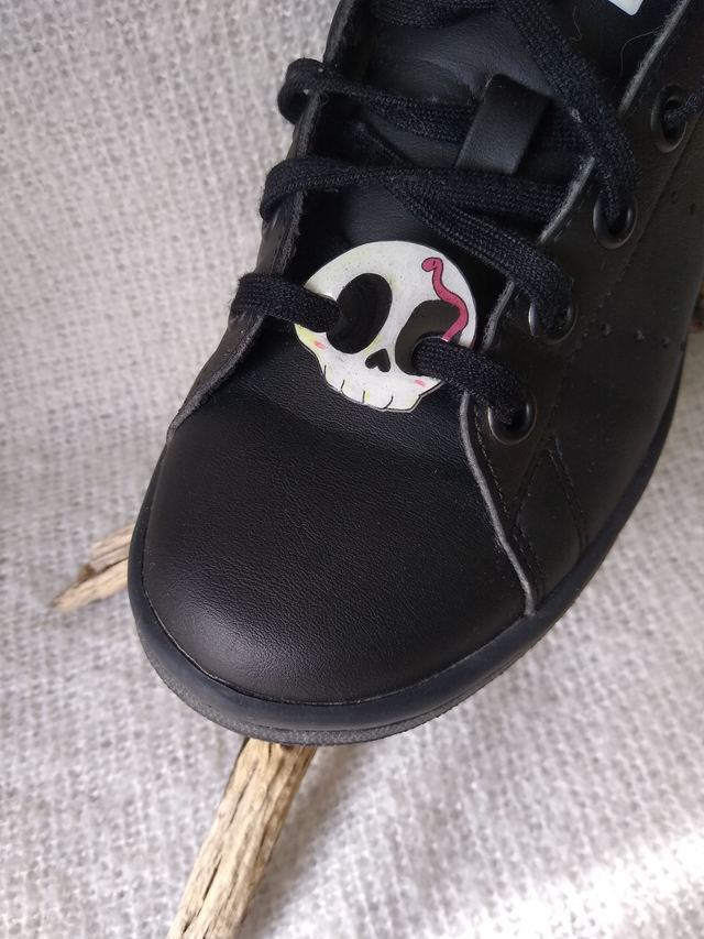 Un peu dark et un peu mignonne en même temps, cette tête de mort est prête à venir s'installer sur vos lacets !