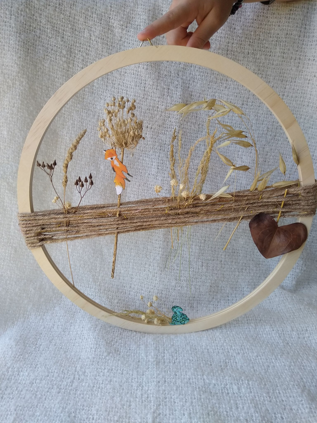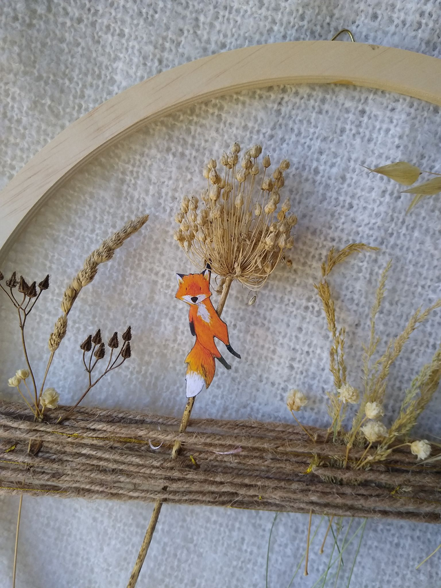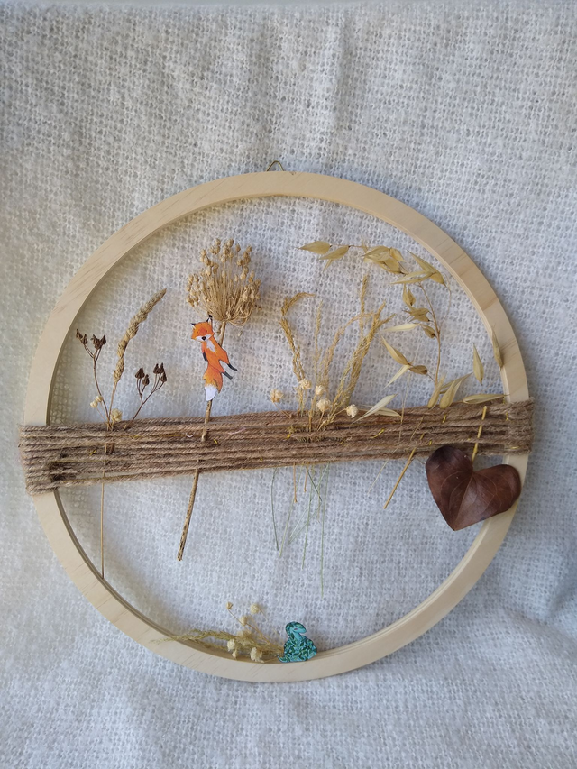 Et voilà une petite déco murale douce et poétique... Faite avec des fleurs séchées cueillies dans mon jardin punk! On y retrouve mes petits personnages faisant les fous dans les herbages, le tout sur un cadre en bois brut. Bref, une déco tout en délicatesse et mignonnerie et éléments naturels !