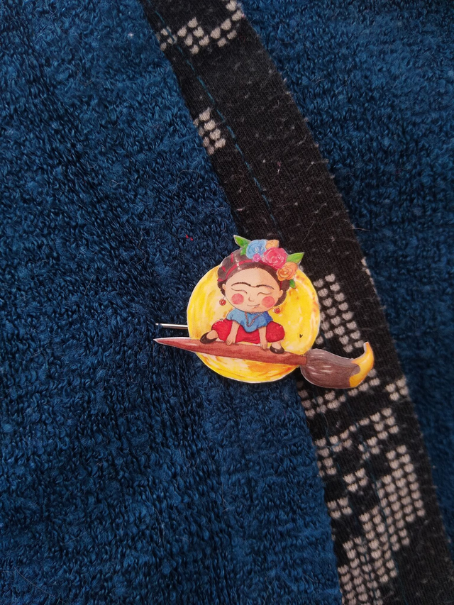 Une fibule de 9 cm de long pour piquer dans vos chapeaux, vos gilets ou vos encore vos foulards pour être toujours accompagnée de l'âme d'artiste de Frida Kahlo !