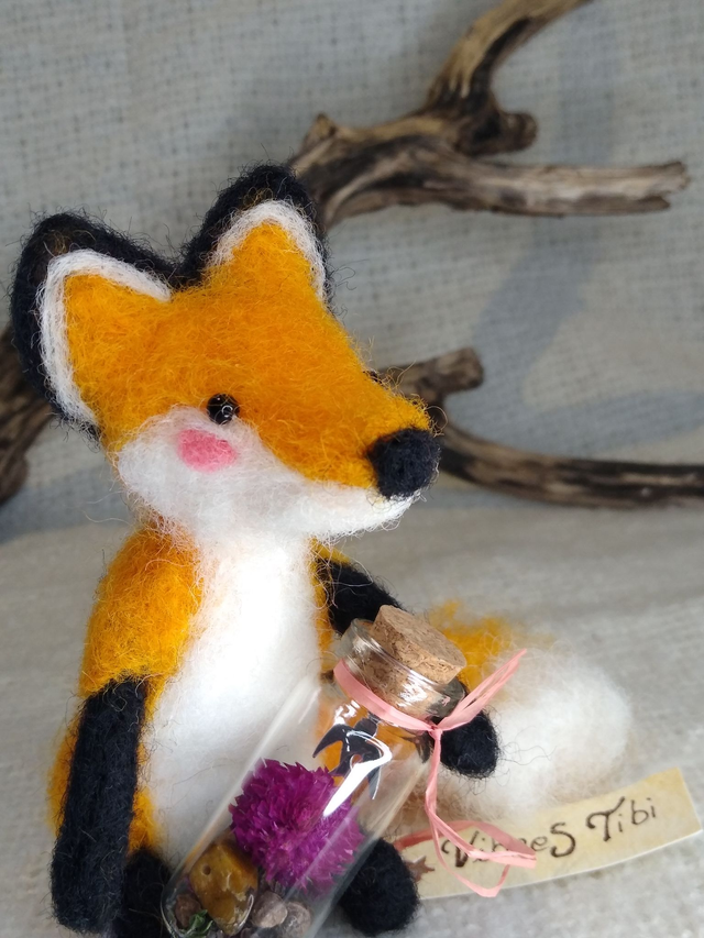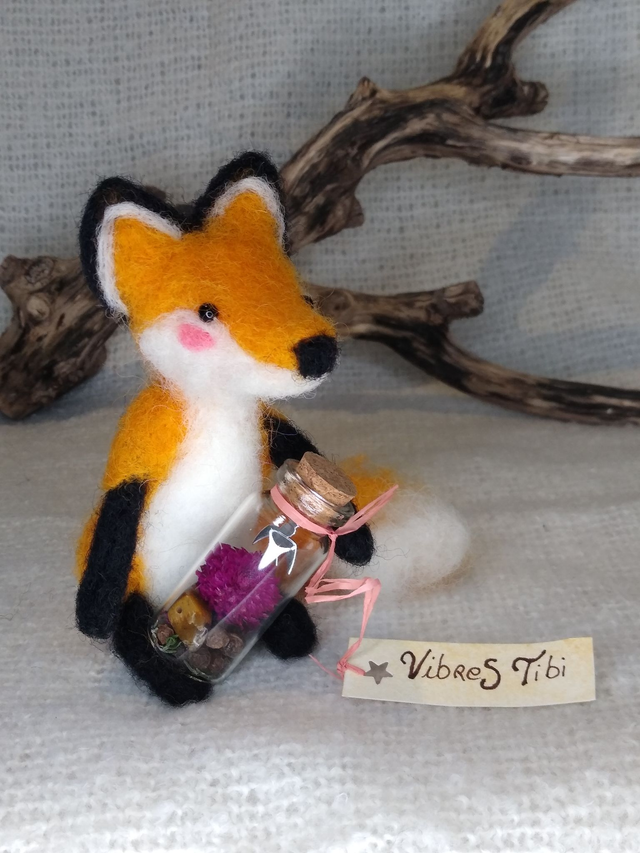 Voici un petit renard mignon et sa potion de courage "Vibres Tibi"
