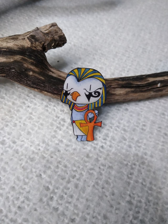Dans l'Egypte antique, Horus est le dieu du ciel. Ses yeux représente le soleil et la lune. Wahou, toute cette classe sur un pin's, c'est incroyable!