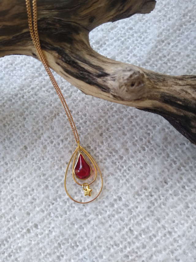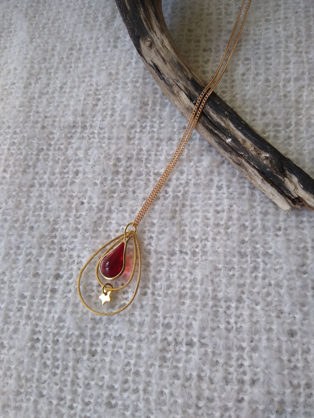 Jouer la carte l'élégance avec ce sautoir fin et original : une étoile scintillante et une goutte en verre rouge, parfaite pour ajouter une touche de magie à votre style. A marier avec n'importe quel vêtement de votre garde-robe!